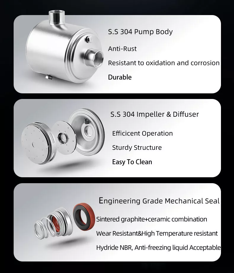 CHM2-3/EP | 0.37 | 4.5 | 29.5 | 2m³/h@24m | 3 | 304x174x255 | 9.4 |