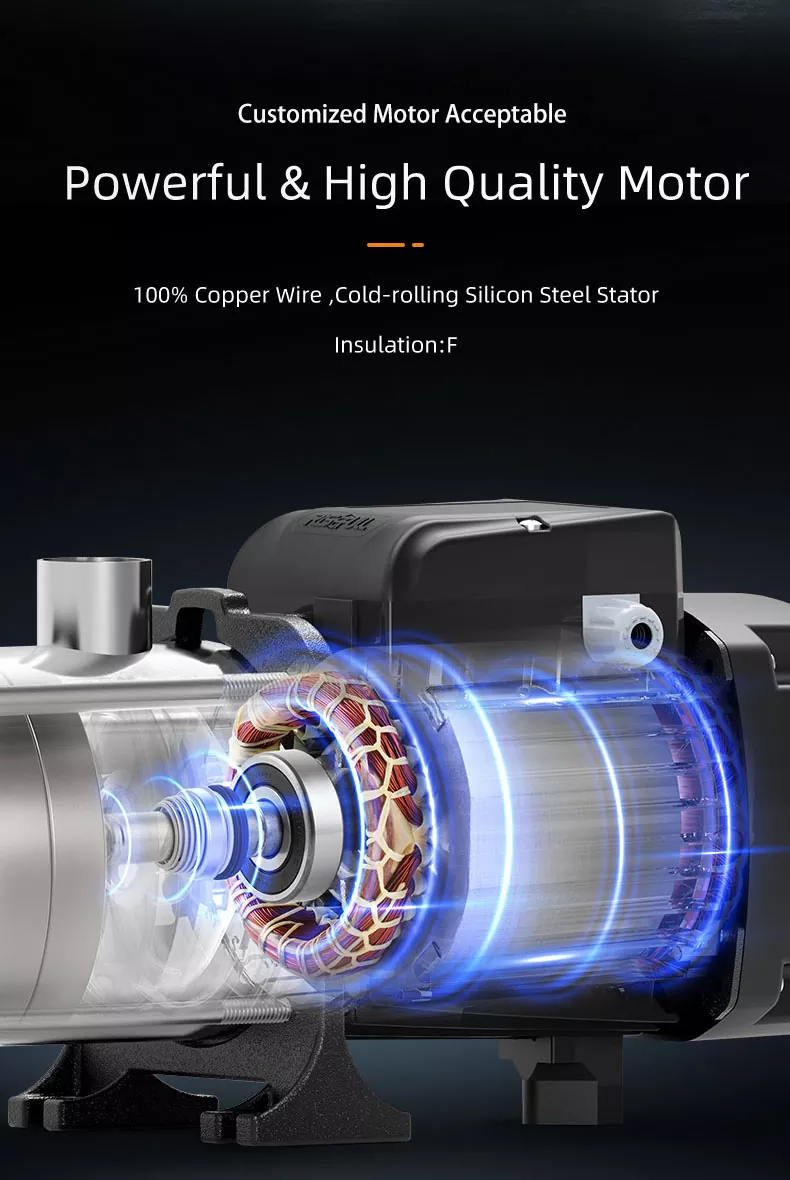 2. Multistage sentrifugalpumpe har samme kaliber og er på samme horisontale midtlinje. Det er ikke nødvendig å endre rørledningsstrukturen. Det kan installeres direkte på hvilken som helst del av rørledningen, som er ekstremt praktisk å installere.