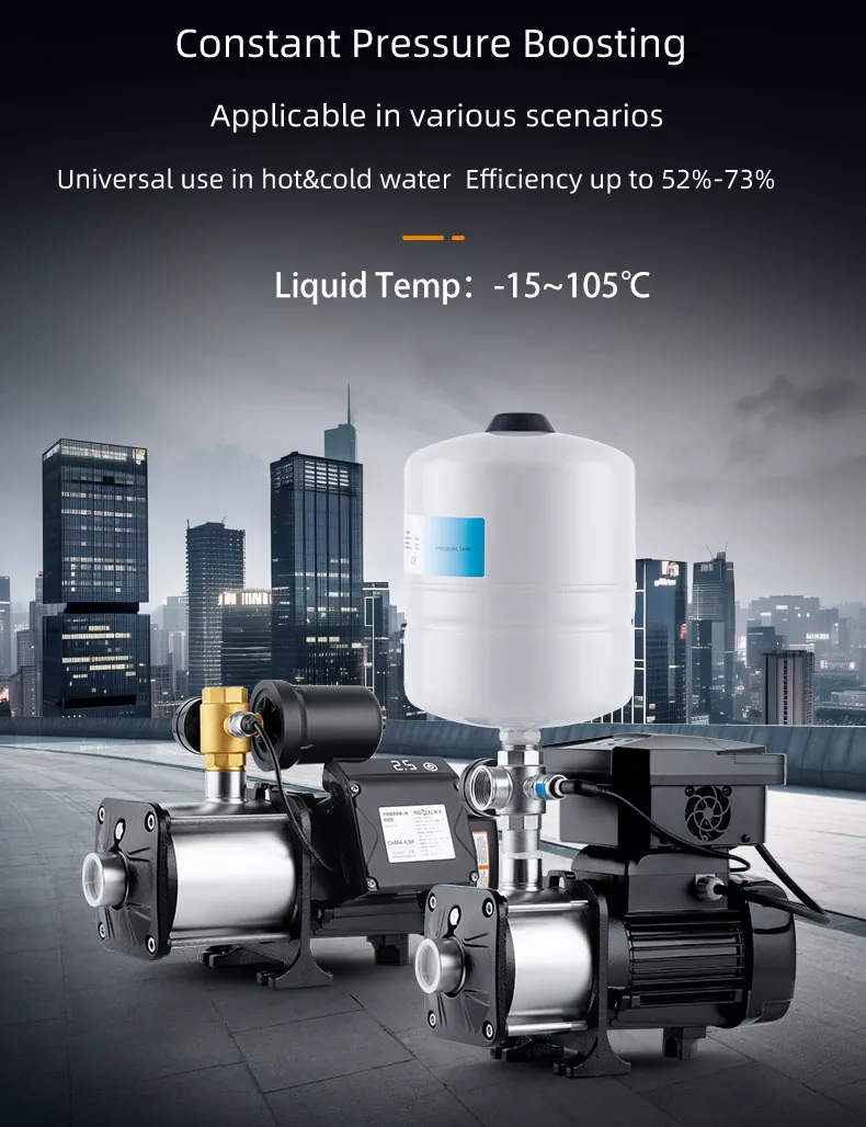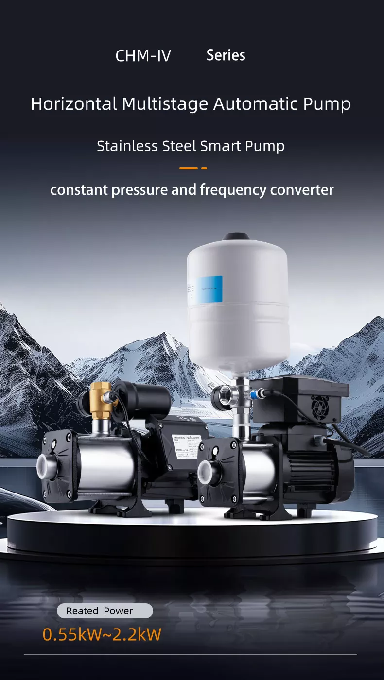 CHM16/IV-serien Smart Inverter Series Horisontalt rustfritt stål Multistage Centrifugal Pump er et relativt modent produkt på markedet som for tiden er med kompakt struktur og stabil arbeid, lav driftsstøy, opptil 44-70%. Alle vannpassende komponenter er laget av rustfritt stål AISI304. Det er mye brukt i