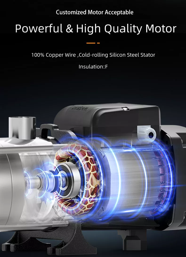 Innovativ design: Vår smarte høytrykks multistage pumpe er utstyrt med avansert teknologi, og sikrer optimal funksjonalitet og holdbarhet. Flerstegsutformingen gir mulighet for høytrykksutgang, noe som gjør den ideell for et bredt spekter av applikasjoner.