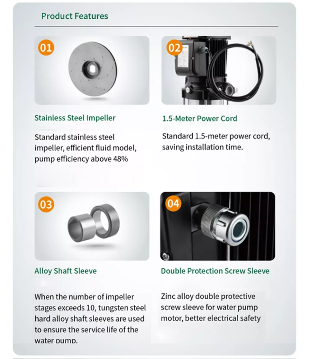 · Mekaniske tetninger laget av hard legering + fluorgummi reduserer lekkasje og energiforbruk, og sikrer jevn og stillegående drift.