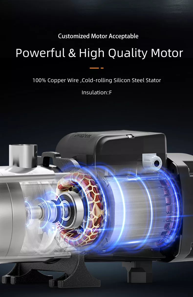 Fra vannforsyning og trykkøkning til industrielle kjøling og sirkulasjonssystemer er vår horisontale flerstegpumpe i rustfritt stål allsidig nok til å håndtere et bredt spekter av bruksområder. Den flertrinns konfigurasjonen gir mulighet for høyere trykkfunksjoner, noe som gjør den ideell for bruk i høye bygninger og kommersielle fasiliteter.